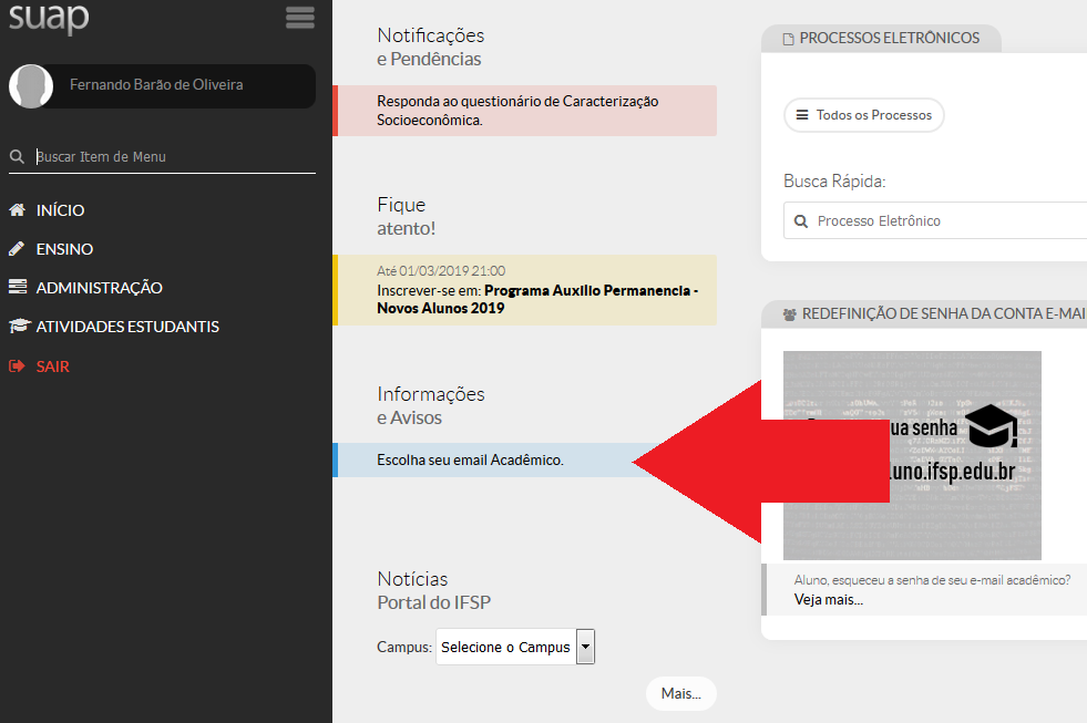 Página inicial > Acesso aos Sistemas Acadêmicos