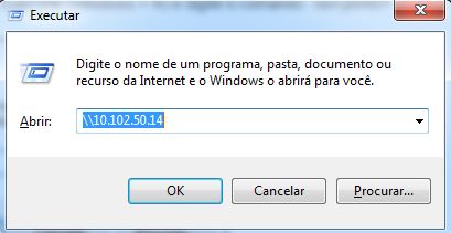 2) No Windows , Selecione a opção Executar (Windows + R) e digite o comando: \\10.102.50.14