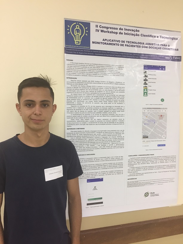 Os alunos Ezequiel Lima, Katherine Sawaeda e Leonardo Pazutti do curso de Tecnologia em Sistemas para Internet (TSI) do IFSP campus Birigui, sob a orientação do Prof. Dr. Rogério Pinto Alexandre, apresentaram no dia 13 de novembro de 2018 trabalhos no II Congresso de Inovação e Tecnologia e IV Workshop de Iniciação Científica e Tecnológica, realizado na Faculdade de Tecnologia de Lins (FATEC Lins).