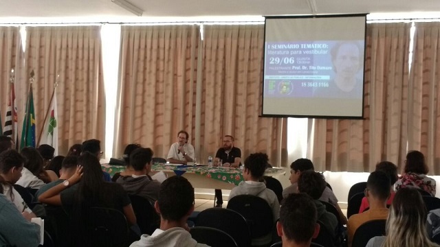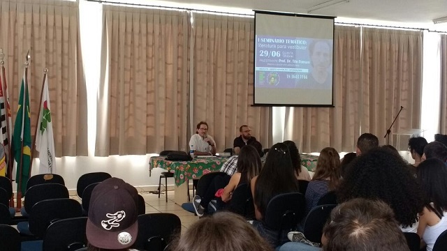 Na tarde desta quinta-feira (29/06) aconteceu a abertura do evento “Seminários Temáticos: literatura para vestibular”. O evento, que acontecerá ao longo do ano, tem como objetivo analisar obras literárias recorrentes em vestibulares e é organizado pelo professor Antonio Luceni e colaboradores do Cursinho Popular “Hannah Arendt”.