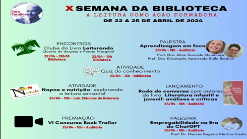 A décima edição da Semana da Biblioteca trás para você, no dia 24.04.2024 às 19h, uma inesquecível Roda de conversa e lançamento do livro "Literatura infantil e juvenil: análises e...