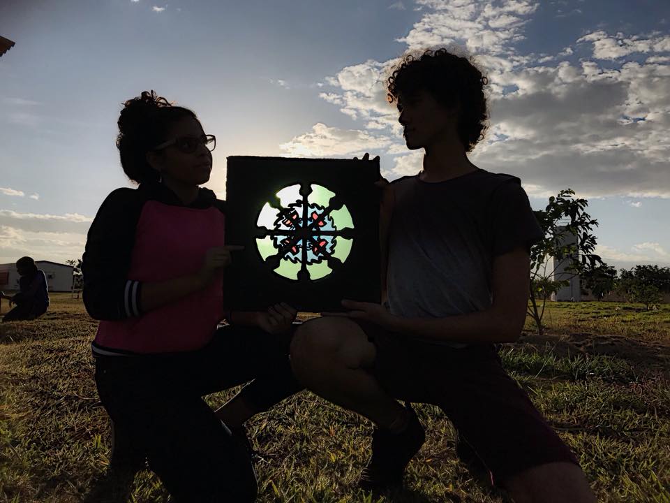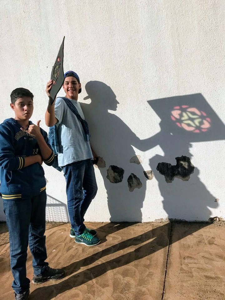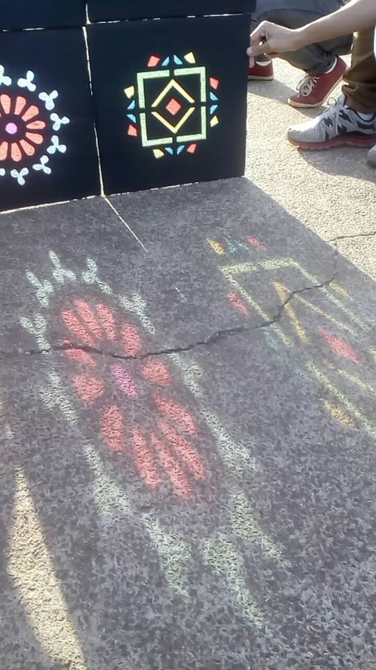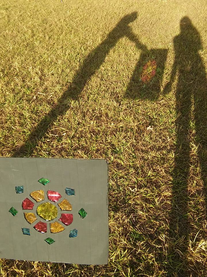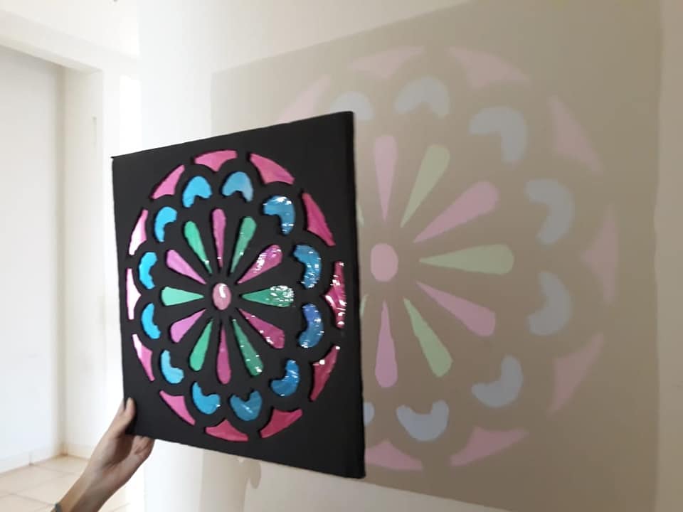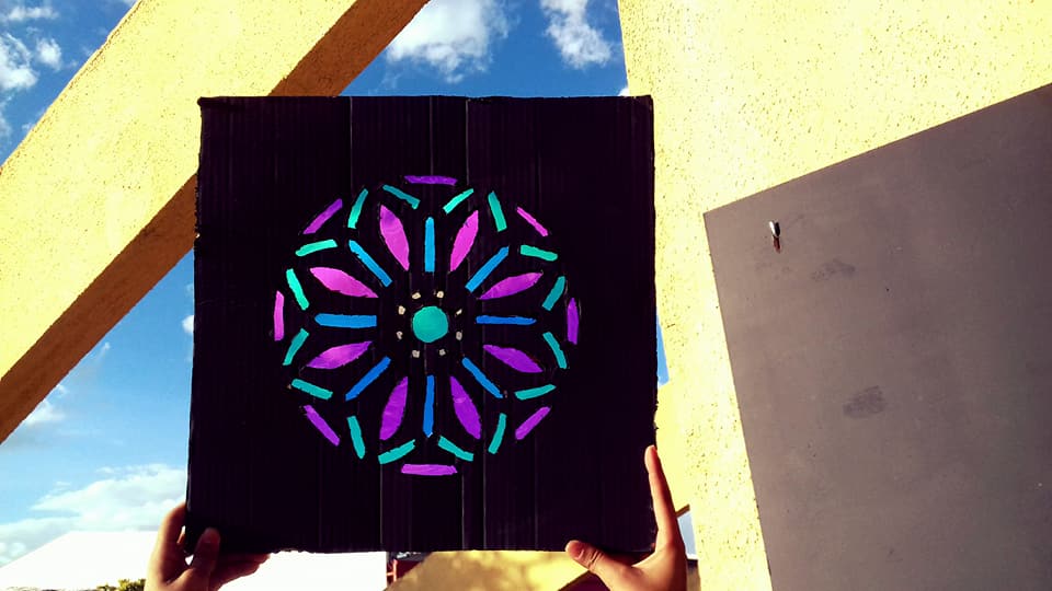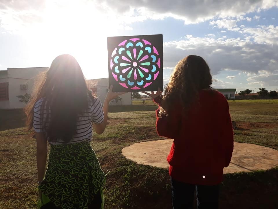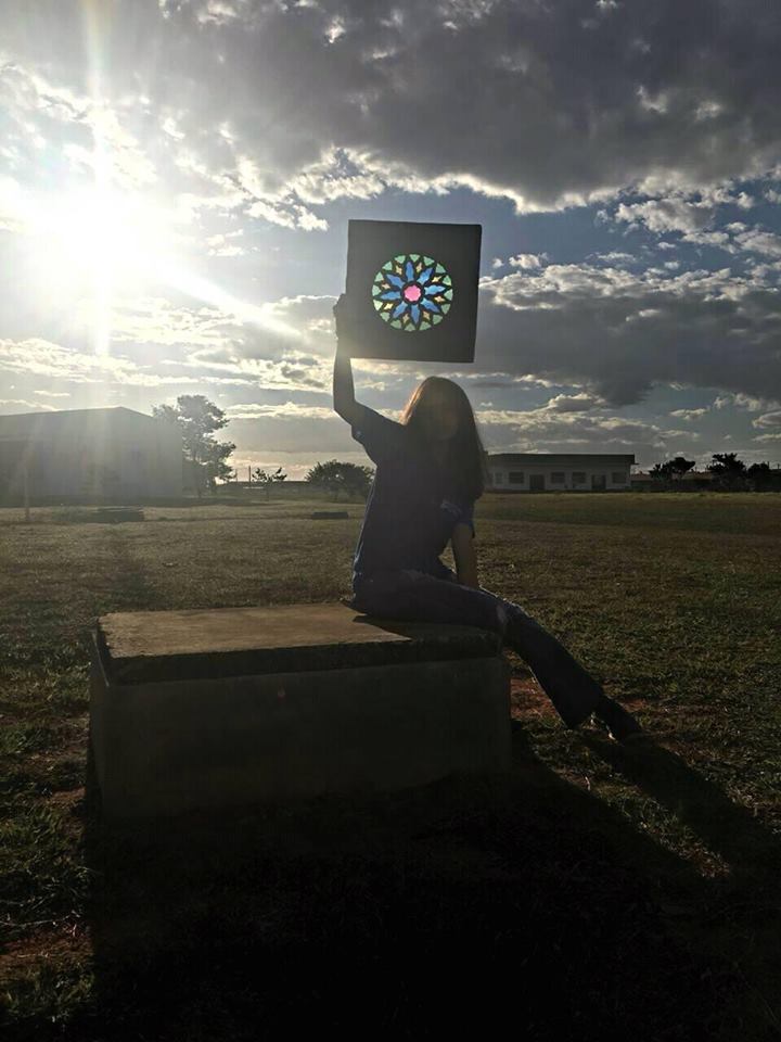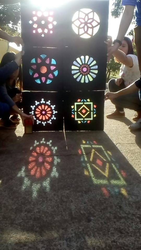 O uso de vitrais é algo antigo, remete à Idade Média, na Europa, no início do século XII, sobretudo presentes em catedrais católicas, com o intuito de catequizar os fiéis – cenas e histórias bíblicas, entre outras. “Quando os raios do Sol atravessarem o vidro colorido com toda a sua genialidade, a quem atribui o senhor o matiz das cores na parede? Sem hesitar, atribuiria as belas cores na parede aos raios do Sol, não ao vidro”. Este comentário de Virginum Speculum, um texto dialogal teológico muito utilizado no ensino, e que data de 1140, ilustra claramente a preferência neste período pelos vitrais sobre a pintura mural e o mosaico, símbolo de Deus. Modernamente, os vitrais continuam a reinar, não somente em igrejas, como também em prédios públicos, empresas e até residências. A relação entre luz e cor, as sensações que estas causam nas pessoas ao entrar em contato com vitrais foram objeto de estudo ao longo do primeiro semestre do Ensino Médio Integrado e culminou na construção de uma instalação artística, num conjunto de “vitrais” (20 placas – 40x40cm) feitos de papelão e celofane, pintados de acrílica. Um verdadeiro espetáculo de luz e cor aos olhos de quem a vê.