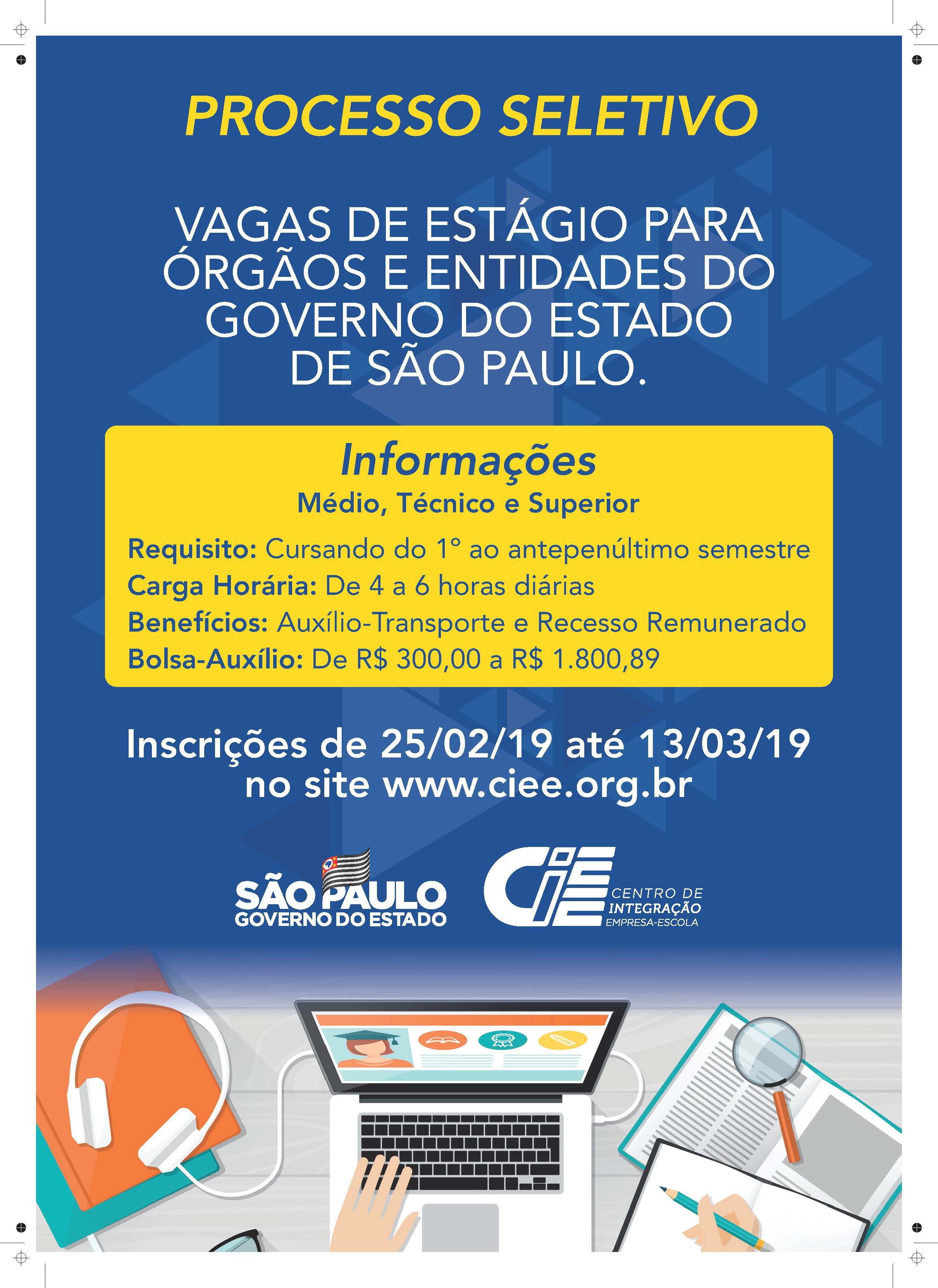 Inscrições abertas para estágios no Governo do Estado de São Paulo!!!
