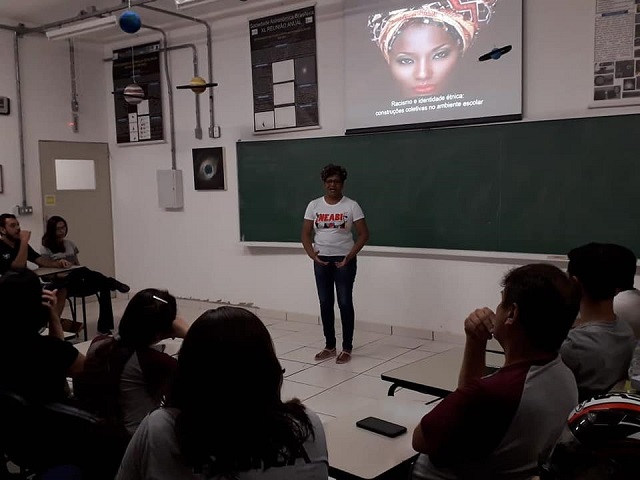 Na noite de 28 de maço de 2019, os alunos do curso de Licenciatura em Física tiveram uma aula diferente. A profa. e representante *NEABI/Birigui Elisandra Pereira, ministrou a Atividade Formativa: Racismo e Identidade Étnica: construções coletivas no ambiente escolar. Essa atividade teve como objetivo despertar nos futuros docentes um novo olhar sobre a história do povo negro, de modo a colaborar para a desconstrução de conceitos racistas que influenciam no trato pedagógico.
