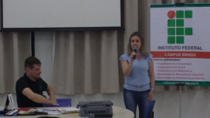 No período da tarde, o encontro foi com os alunos da Engenharia de Computação, mediado pela Professora Dra. Flávia Beatriz Rodrigues Prisco da Cunha (representante NAPNE do campus Birigui e pesquisadora do ITech), com apoio da professora Samara Martha Cavalcante Cuppari da Silva (membro NAPNE), e dos Prof. Dr. Adriano de Souza Marques (Coordenador de Extensão e pesquisador do ITech ) e Prof. Dr. Rogério Pinto Alexandre (líder do grupo de pesquisas em tecnologias assistivas – ITech). Com a Engenharia, a proposta foi debater a inserção da tecnologia no cotidiano das pessoas com necessidades específicas. Foram apresentados trabalhos de iniciação científica orientados por pesquisadores do grupo ITech e, na sequência, foi realizado um produtivo debate, que gerou importantes ideias para novas pesquisas.