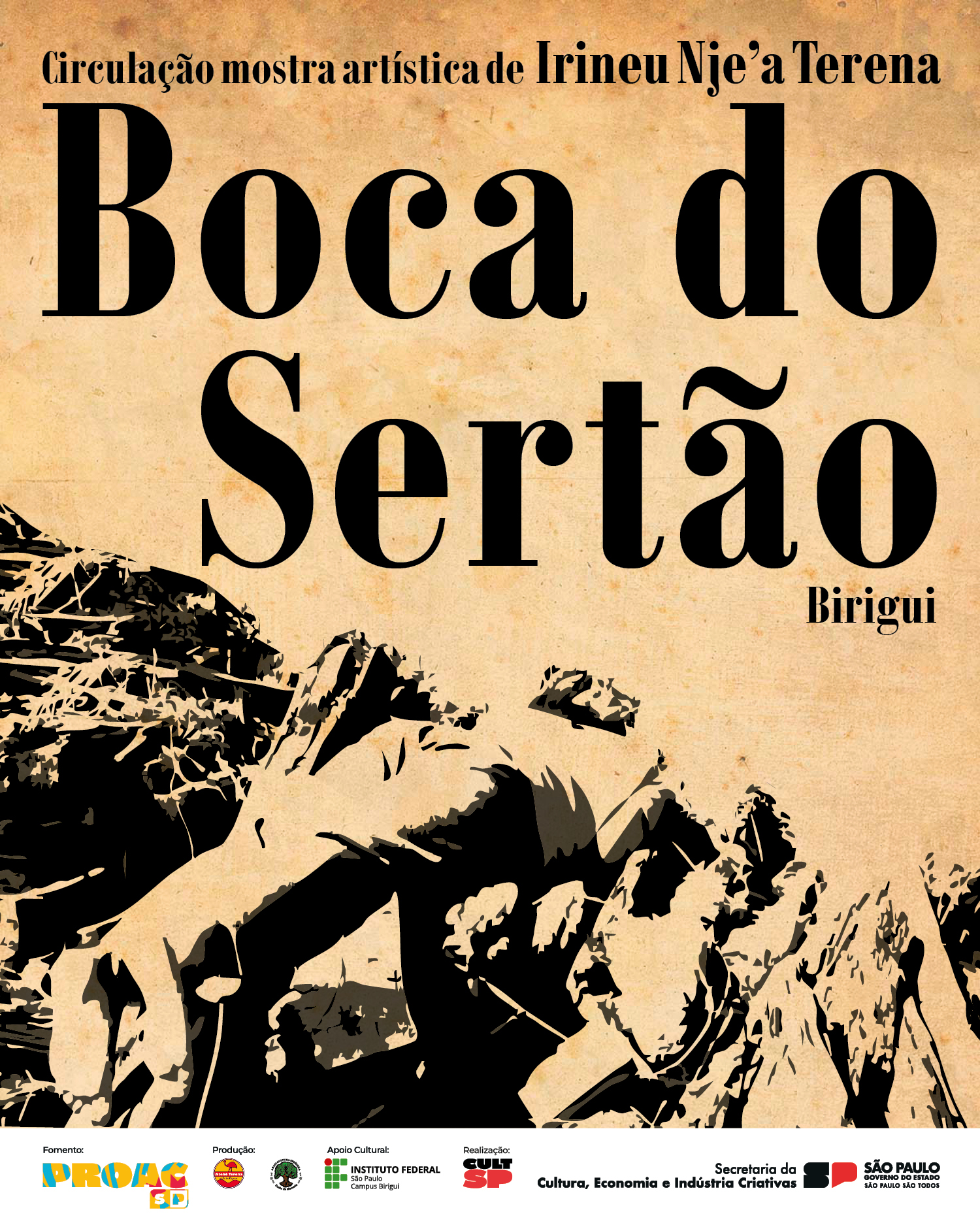 A Comissão ETNO-Birigui tem o prazer de anunciar que no mês de outubro de 2025, o Campus Birigui - IFSP sediará a mostra artística Boca do Sertão, do artista indígena Irineu Nje’a Terena, com curadoria própria. O projeto, aprovado em edital estadual de fomento cultural do PROAC - Programa de Ação Cultural, da Secretaria da Cultura, Economia e Indústria Criativa do Estado de São Paulo, passará por cidades como Araraquara, Bauru, São Paulo e terá uma etapa em Birigui.