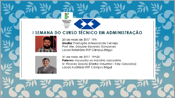 Nos dias 30 e 31 de maio, o curso Técnico em Administração realizará sua 1ª Semana de Curso, dentro do formato descentralizado recentemente adotado pelo campus Birigui.