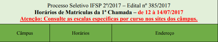 CONVOCAÇÃO PARA MATRÍCULA DO PROCESSO SELETIVO 2a CHAMADA