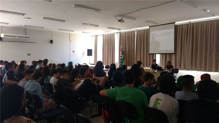 O Ciclo de debates: contemporaneidade(s) foi promovido pelo Cursinho Popular “Hannah Arendt”, do IFSP – Birigui durante o segundo semestre de 2017. O evento, organizado em cinco encontros, teve início com um debate sobre “As relações socioculturais no capitalismo de hoje”, conduzido pelo professor Renato Kendy Hidaka. Na sequência, o professor Genivaldo de Souza Santos abordou o tema “Ética e alteridade”, seguido por uma discussão sobre “A tradução e o contemporâneo”, com o professor Luiz Gustavo Teixeira. O evento teve continuidade com o professor Nelson Rodrigo Pedon, que norteou a discussão sobre “Dilemas da Globalização” e foi encerrado com o debate proposto pelo professor Antonio Luceni.