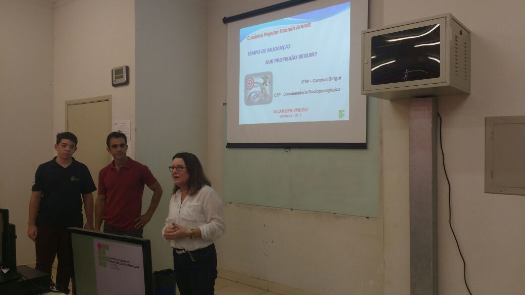 A equipe do sócio pedagógico do IFSP – Câmpus Birigui desenvolveu uma Orientação de Interesse juntos aos alunos do Cursinho Popular “Hannah Arendt” com vistas a escolha...