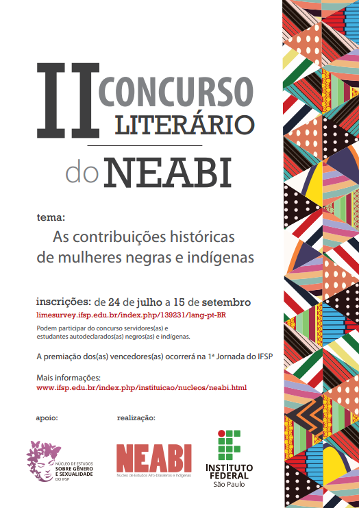 Segue o edital: Edital 2º Concurso Literário do NEABI - IFSP