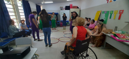 Assim, por meio de oficina de contação de histórias, destacamos a ludicidade como estratégia pedagógica viável no ensino infantil. Nesta prática contou-se com a presença e colaboração da Profª Me. Andreia Zinetti Pedroso, membro do Grupo Colaborativo de Educação Matemática e Científica (GCEMC), grupo de pesquisa do IFSP, cadastrado junto ao CNPq. Que conduziu a oficina e pode também conhecer as turmas das licenciaturas em Física e Matemática do IFSP, realizando uma contação aos estudantes matriculados do 2º semestre.