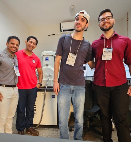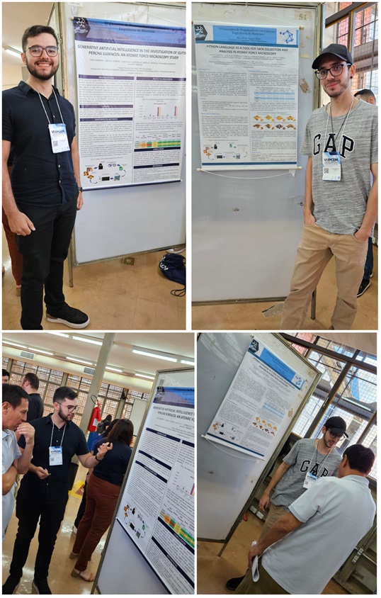 Entre os dias 28 a 30 de agosto de 2025, o Prof. Dr. Allan Victor Ribeiro, docente do curso de Licenciatura em Física do IFSP Campus Birigui e os alunos Lucas H. Contel (Engenharia da Computação) e Erik Zampieri (Licenciatura em Física) participaram do VI Encontro de Pesquisadores em Ciência e Engenharia de Materiais (VI EPCEM) foi realizado na Faculdade de Engenharia de Ilha Solteira. No evento foram apresentados trabalhos de pesquisa desenvolvidos pelos estudantes sob orientação do Prof. Dr. Allan Victor Ribeiro. Os trabalhos são fruto da colaboração científica entre o IFSP Campus Birigui com universidades nacionais e internacionais de excelência, tais como, a Faculdade de Odontologia de Bauru, Universidade de São Paulo (USP) e o Departamento Académico de Física Del Estado Sólido na Universidad Nacional Mayor de San Marcos (UNMSM). Lima, Peru.