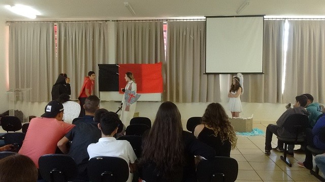 Os alunos da 1ª série do Ensino Médio contracenaram as peças teatrais referentes às obras “Auto da Barca do Inferno” e “Farsa de Inês Pereira” do escritor e teatrólogo português Gil Vicente.