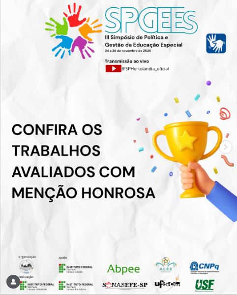 O Instituto Federal de São Paulo (IFSP) – Campus Cubatão recebeu Menção Honrosa no Eixo 4 – Histórias de Vida, Educação e Trabalho de Estudantes Público-Alvo da Educação...
