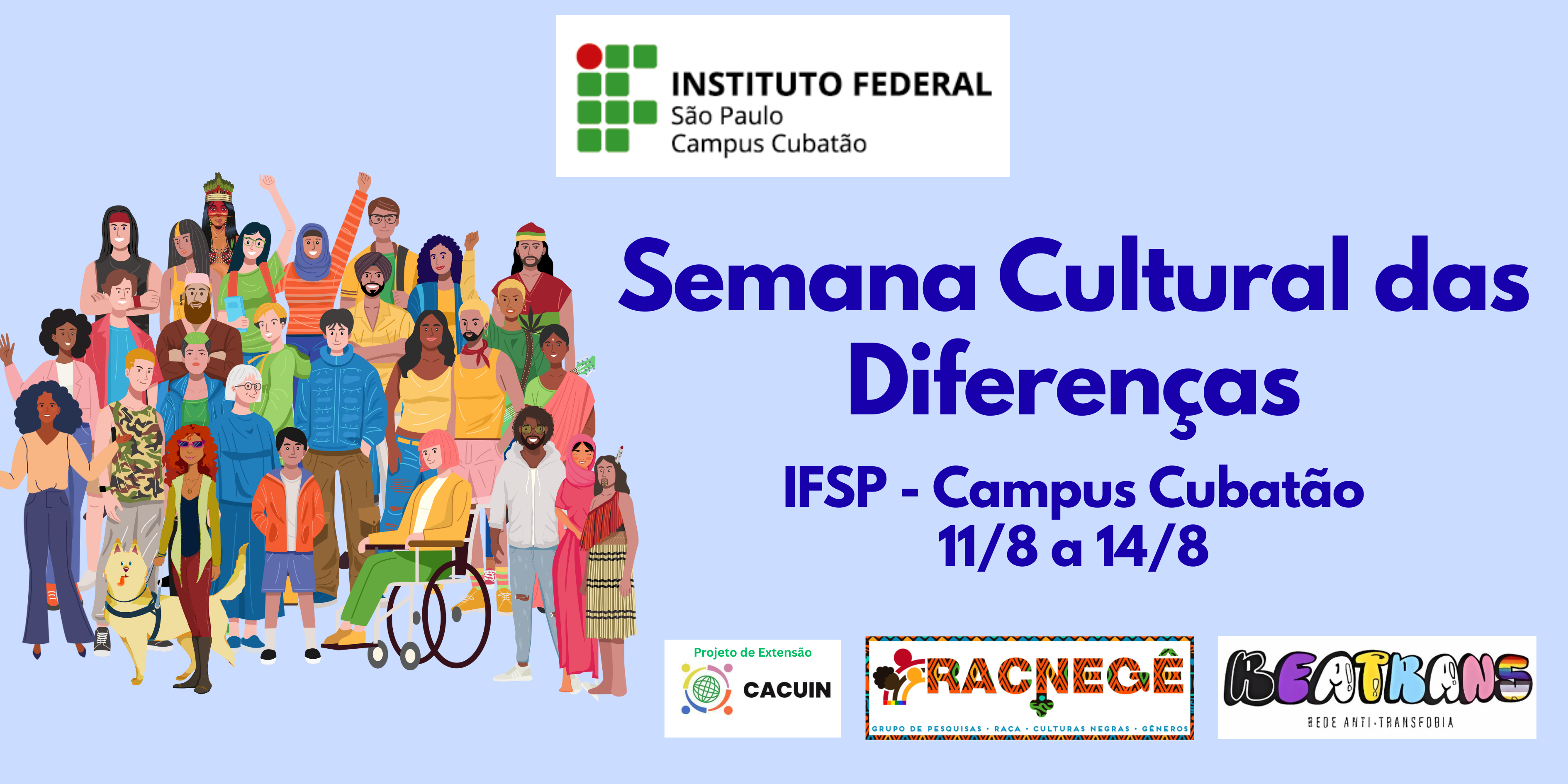🗓️ 11 a 14 de agosto de 2025📍 IFSP Campus Cubatão – Evento gratuito e aberto ao público! De 11 a 14 de agosto, o IFSP Campus Cubatão realiza a I Semana...