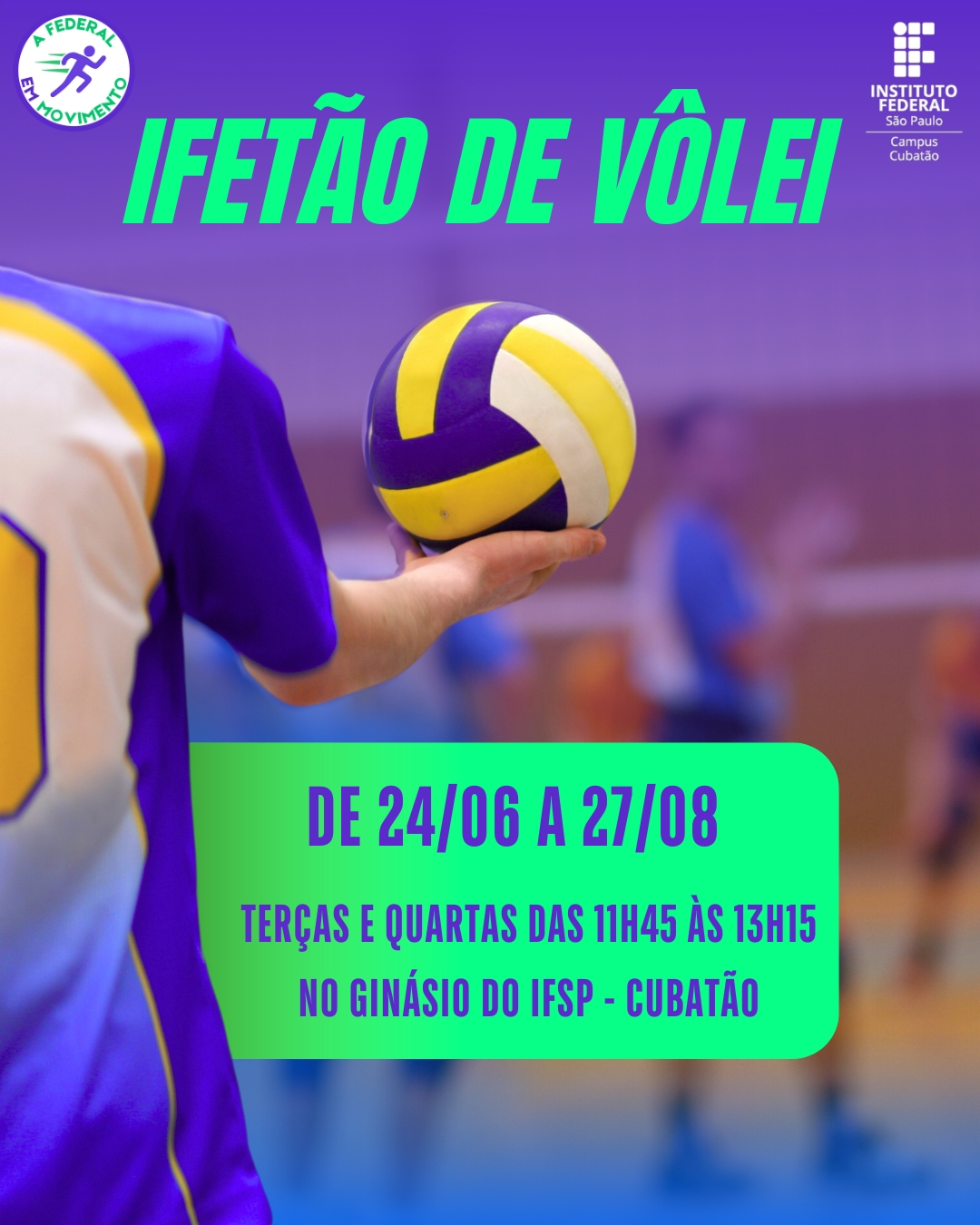 Teve início hoje (24) o IFETÃO de Vôlei do Campus Cubatão, com a participação de oito equipes formadas por estudantes do CTII e CTEI – entre masculinas e femininas. O campeonato...