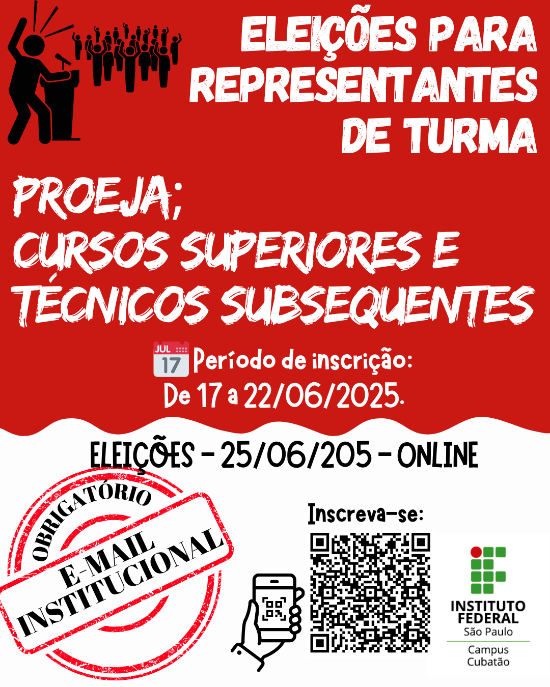Estarão abertas até o dia 27 de junho de 2025, as inscrições para estudantes interessados em se candidatar aos cargos de Representante ou Vice-Representante de...