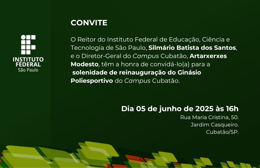 A Comissão Local de Revisão do Plano de Desenvolvimento Institucional (PDI) 2024–2029 do Campus Cubatão convida toda a comunidade interna e externa para a primeira Reunião Pública...