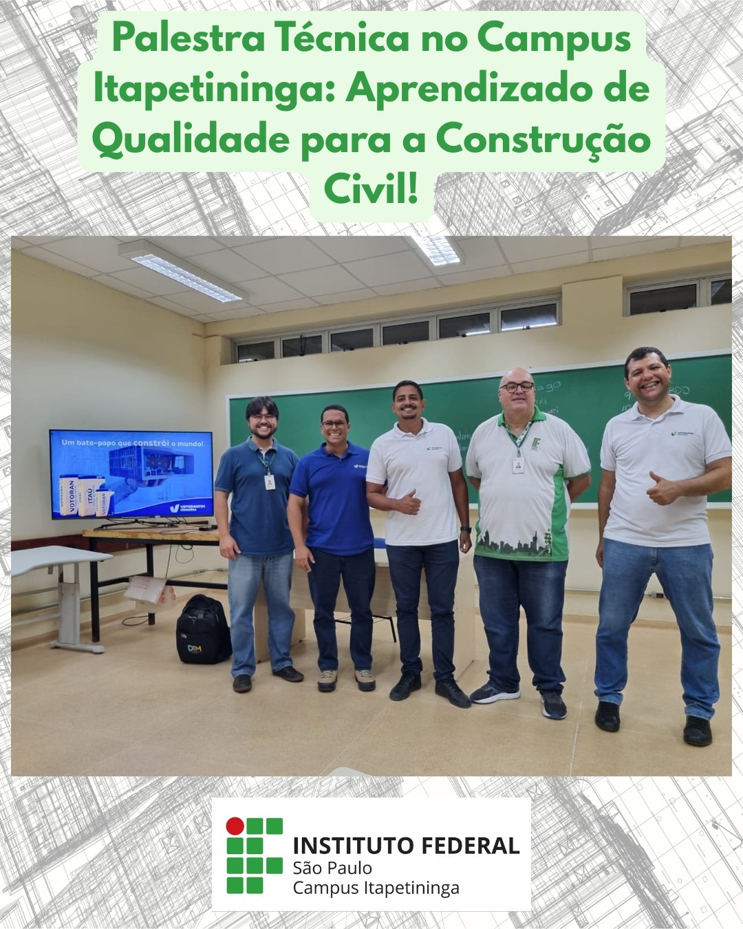 Palestra Técnica "Aprendizado de Qualidade para a Construção Civil"Local: Bloco C do IFSP Campus Itapetininga |