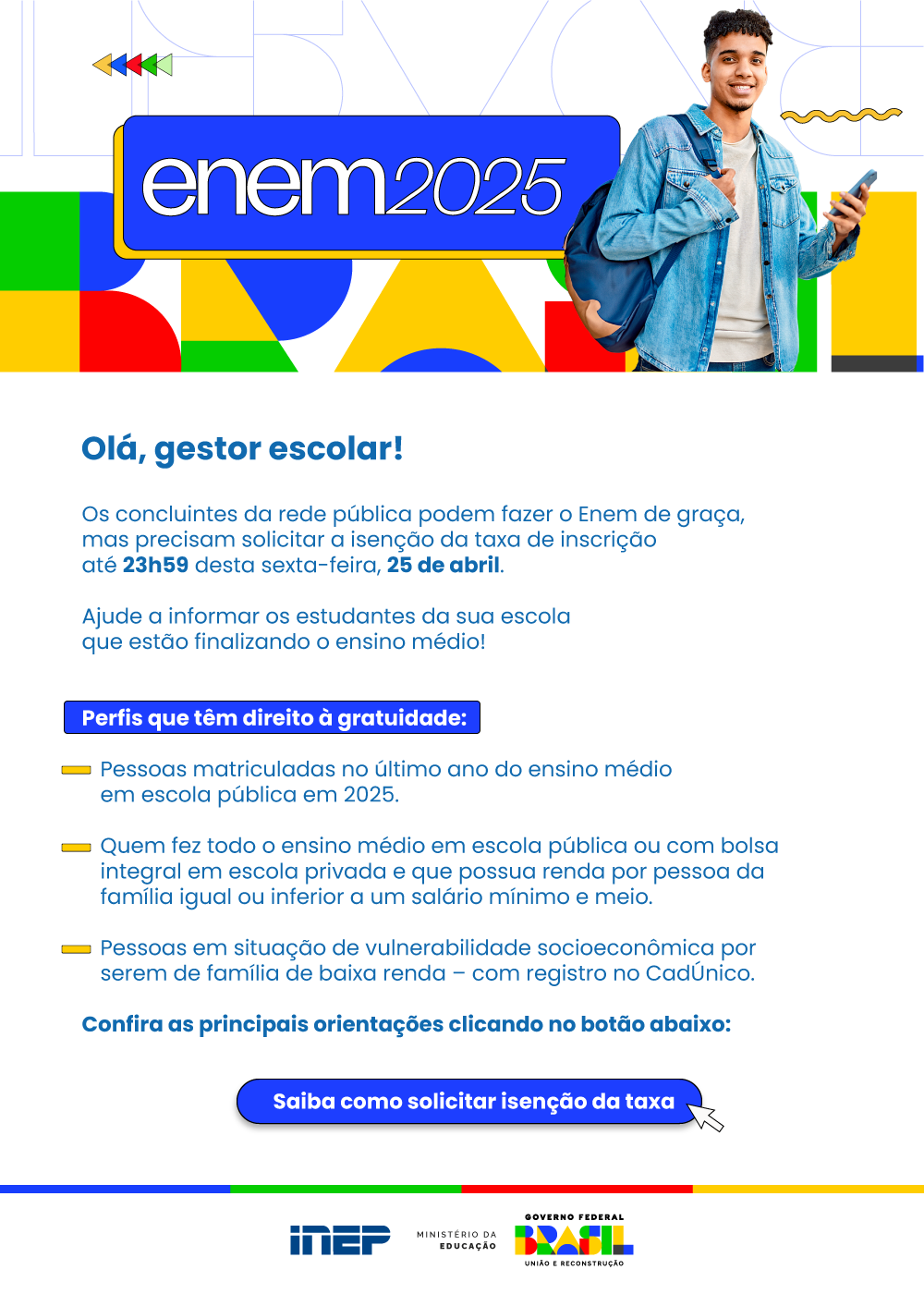 Enem 2025 | Último dia para garantir a isenção no exame