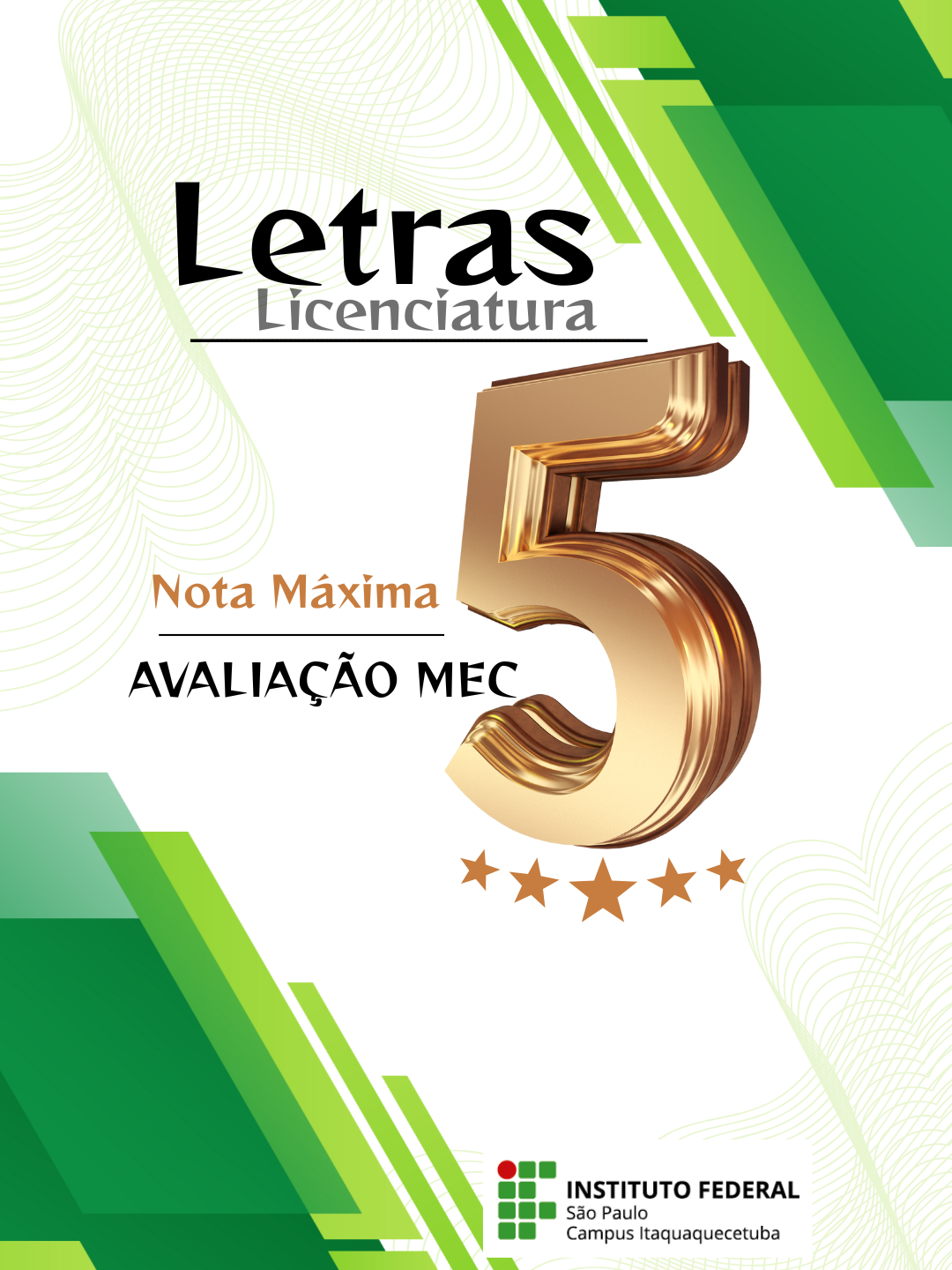 É com extrema alegria que a coordenação do curso superior de Licenciatura em Letras do IFSP Campus Itaquaquecetuba informa que o curso foi avaliado com nota máxima pelo Inep/MEC.