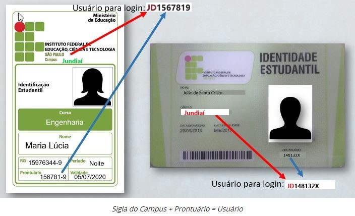 EX.: JD1234567 para os alunos do Campus Jundiaí.