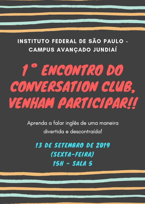 Na próxima sexta-feira, dia 13 de setembro, às 15 horas, acontecerá o primeiro encontro do Conversation Club do câmpus Jundiaí.