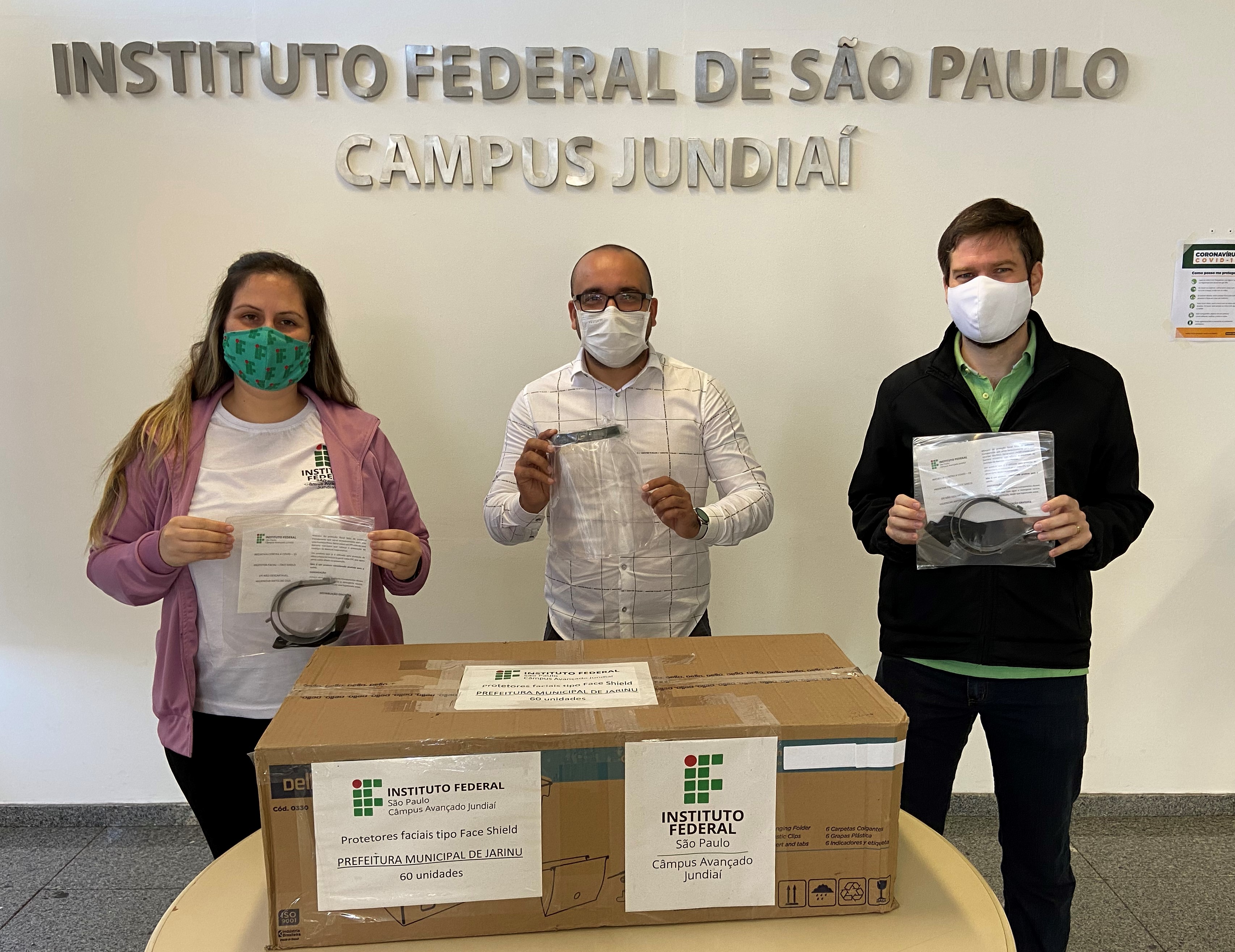 O Instituto Federal Câmpus Avançado Jundiaí realizou a doação de 60 protetores faciais, do tipo FaceShield, para a Prefeitura do Município de Jarinu, por meio da Secretaria de Saúde, para garantir a proteção dos profissionais de saúde durante o atendimento à população.