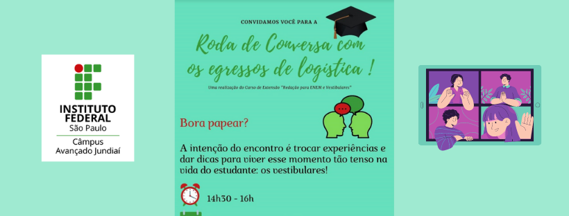 O Curso de Extensão "Redação para ENEM e Vesibulares" realizará terça-feira (09/11), às 14h30, um encontro com estudantes egressos do curso de Logística.