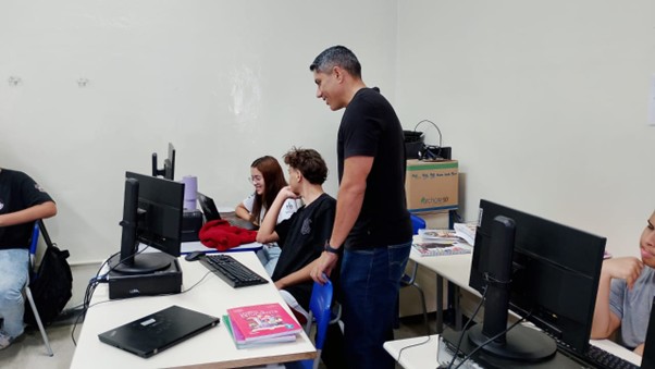É notório que, após a pandemia, houve um aumento significativo na demanda por profissionais na área de tecnologia, tanto na programação quanto na manipulação de ferramentas de inteligência artificial. Diante desse cenário, os discentes do curso de Bacharelado em Ciência da Computação do IFSP – Campus Presidente Epitácio, por meio do projeto de extensão “Projeto de Curricularização: Disseminação do Ensino de Computação para a Comunidade”, realizaram duas oficinas na Escola Estadual Antônio de Carvalho Leitão, entre os meses de outubro e novembro, destinadas aos estudantes do ensino médio. O objetivo foi conscientizar os alunos sobre os impactos e as oportunidades decorrentes dessa nova demanda no setor tecnológico.