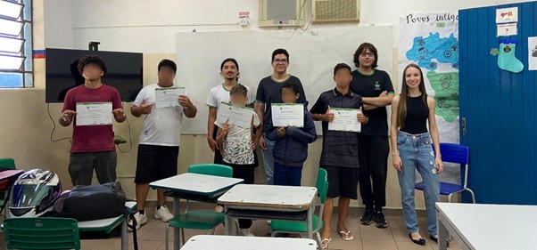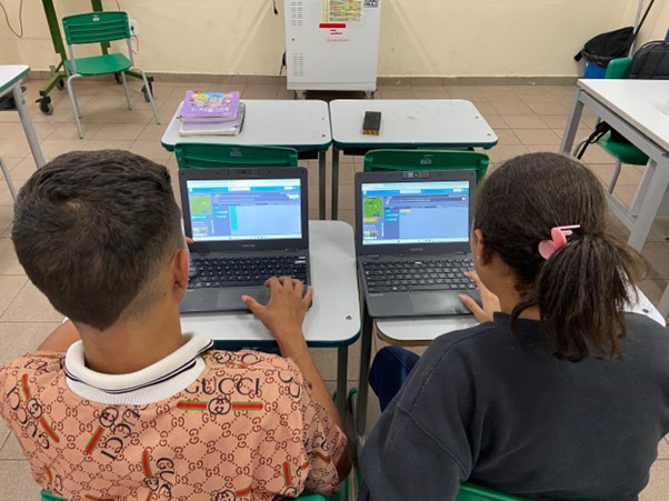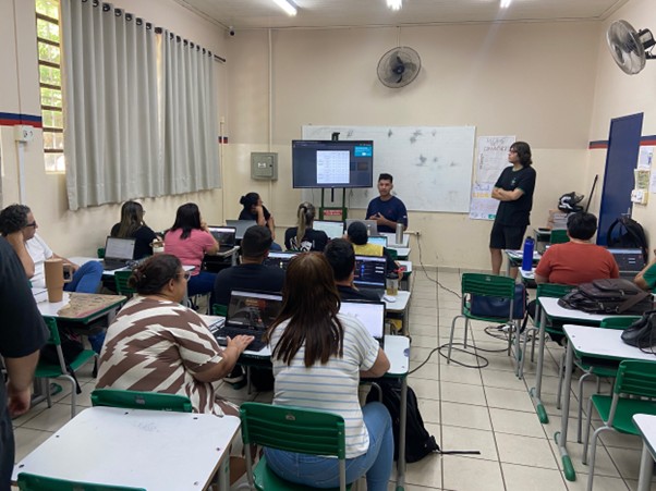 Os discentes promoveram oficinas voltadas aos alunos do Ensino Fundamental II, com ênfase em conceitos de informática básica, e aos professores, com o objetivo de oferecer capacitação profissional na área de inteligência artificial.