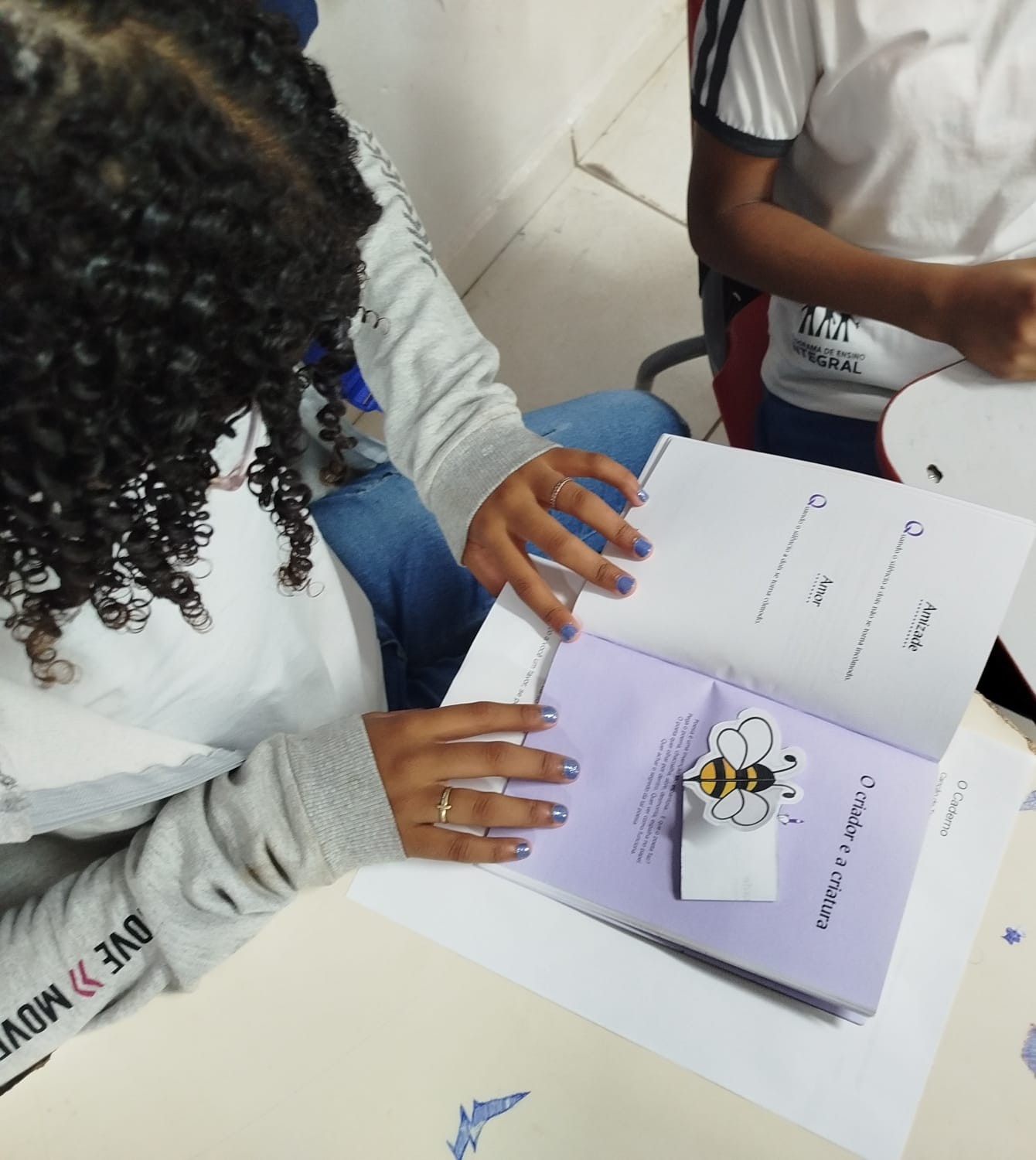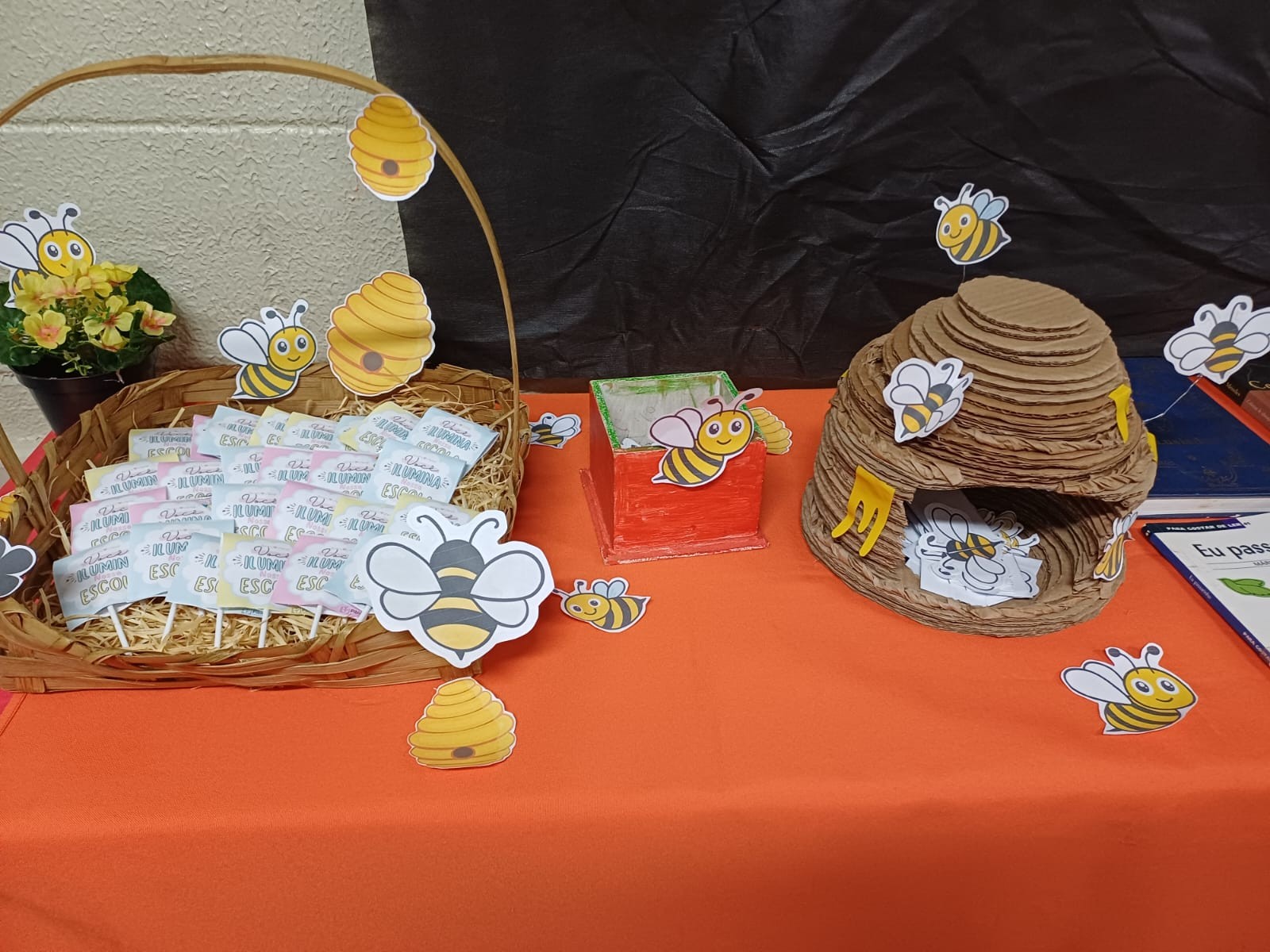 A atividade teve como objetivo valorizar a importância da poesia e seus fundamentos, destacando-a como uma forma de expressão de sentimentos e emoções. Como parte da proposta, foi apresentada a dinâmica da “colmeia literária”, em que os alunos retiravam abelhas contendo poesias de autores brasileiros, promovendo a leitura em voz alta e a reflexão sobre os textos. A colmeia simboliza a poesia como o mel: algo doce que nasce do trabalho das palavras.