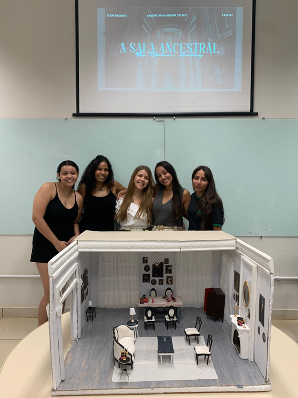 A interligação entre arte, design e cultura foi um dos aspectos relevantes do trabalho, permitindo que os alunos compreendessem o papel da cenografia na narrativa visual e desenvolvessem maquetes com forte apelo estético e simbólico. “Fazer uma maquete inspirada no cenário de um filme foi uma experiência incrível. Eu pude ver como o design de um ambiente ajuda a contar a história, percebi como cada detalhe importa! Aprendi sobre proporção, escala, representação em 3D e principalmente a trabalhar em equipe. Tudo foi feito com muito carinho, criatividade e troca de ideias e aprendizados”, relatou a aluna Maikésia Acásia.