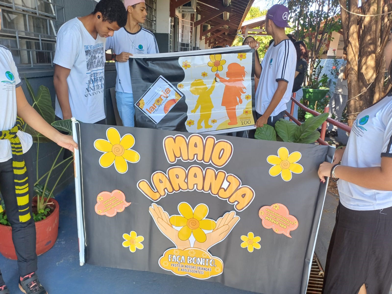 O momento é considerado o “Dia D” da campanha Maio Laranja, que acontece ao longo de todo o mês. A ação contou com banners, placas com frases como “Infância segura, vida mais pura” e balões na cor laranja, símbolo da campanha. Os alunos foram organizados no portão de entrada da escola para realizar uma caminhada pelas proximidades, utilizando esses recursos com o objetivo de chamar a atenção da comunidade para o tema. Para a aluna Mariana Santos, do segundo ano do ensino médio, essa ação foi muito significativa: “Acredito que é uma campanha muito importante e que ensina muitas coisas”.