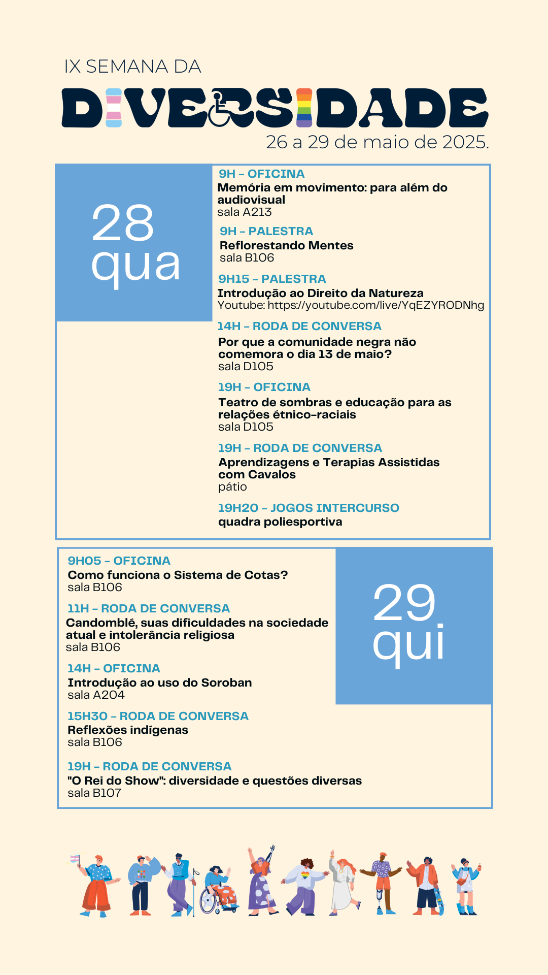 A IX Semana da Diversidade acontece entre os dias 26 e 29 de maio no IFSP campus Presidente Epitácio e terá atividades para todas modalidades de cursos da instituição.