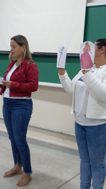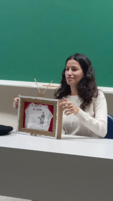 A aluna Franciele apresentou o conto Adão e Eva e as alunas Viviane e Gislene o conto Um apólogo