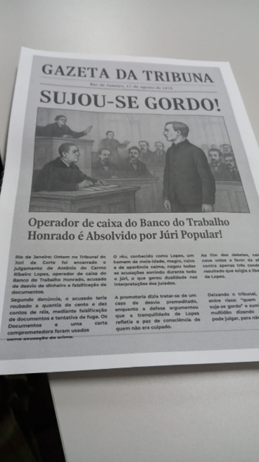 Na quarta-feira, dia quatro de junho deste ano, a turma do quarto termo do curso de Licenciatura em Letras Português/Inglês do IFSP-PEP fez apresentações criativas de diversos contos do escritor brasileiro Machado de Assis, na aula de Literatura Brasileira: dos textos informativos ao Naturalismo. Alguns contos foram apresentados com encenações de pequenos trechos, outros com ilustrações de personagens, outros a partir de objetos, houve ainda contos que se transformaram em notícia de jornal impresso e de telejornal.