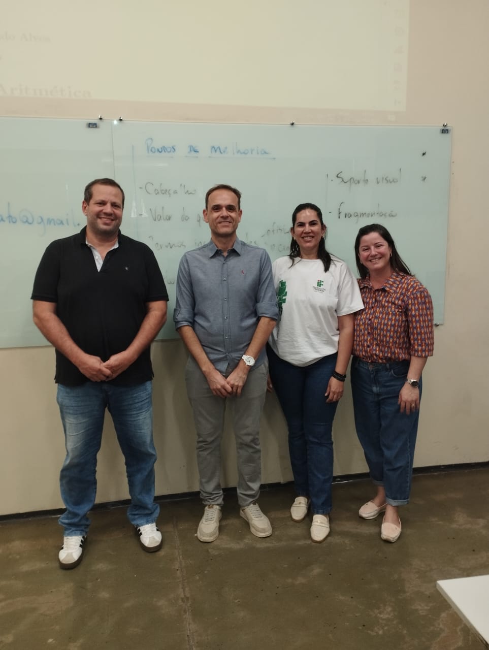Um dos destaques foi a atividade de formação pedagógica voltada para os docentes do campus, que tratou da adaptação de questões dissertativas em disciplinas de exatas para estudantes com TEA e TDAH, ampliando o repertório de práticas inclusivas.