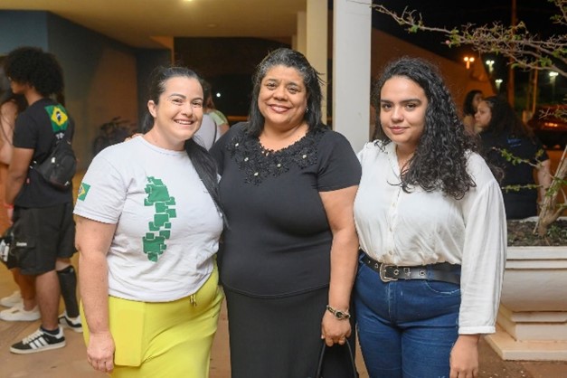 Da esquerda par a direita, a aluna Ana Paula, a professora Alzira e a aluna Giovanna