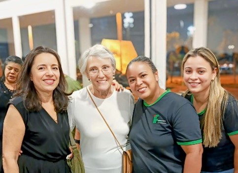 Da esquerda para a direita, a professora Elaine, a inglesa Alyson Ritchie e as alunas Catarina e Viviane
