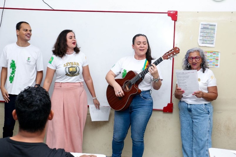 Os alunos do primeiro termo de Letras realizaram o Sarau “Hackeando Ideias” no colégio 18 de Junho