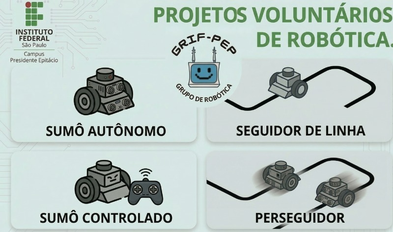O Grupo de Robótica do IFSP – Campus Presidente Epitácio (GRIF PEP) abre inscrições para projetos voluntários de robótica
